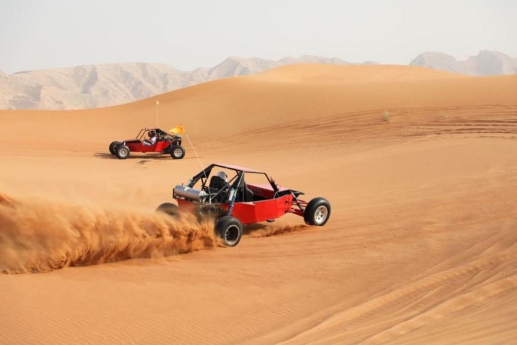 Extreme desert fun with 2-seater and 4-seater buggies. Guided rides through high dunes and desert trails.